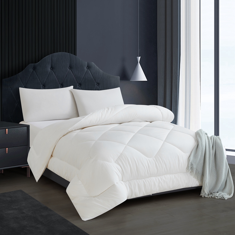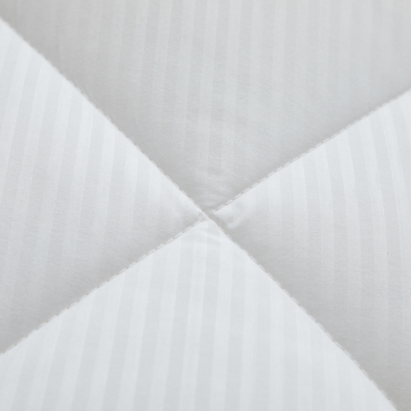 Denne mikrofiberdyne er designet specielt til hotelværelser og har premium bomuld og et blødt, varmt mikrofiberfyld. Fås i størrelser fra tvilling til konge, den kombinerer premium bomuld med mikrofiberfyld. Bomulden er åndbar og blød at røre ved, mens mikrofiberfyldet er let og varmt, hvilket giver fremragende varme uden at fylde. Dens fine fibre fanger luft og skaber en pude-lignende effekt. Dynen har et trådantal på 233/300TC (tilgængelige muligheder), en nøgleindikator for stofkvalitet og holdbarhed. Et højere trådantal betyder, at bomuldsfibrene er vævet tættere, hvilket forbedrer stoffets styrke og blødhed.
