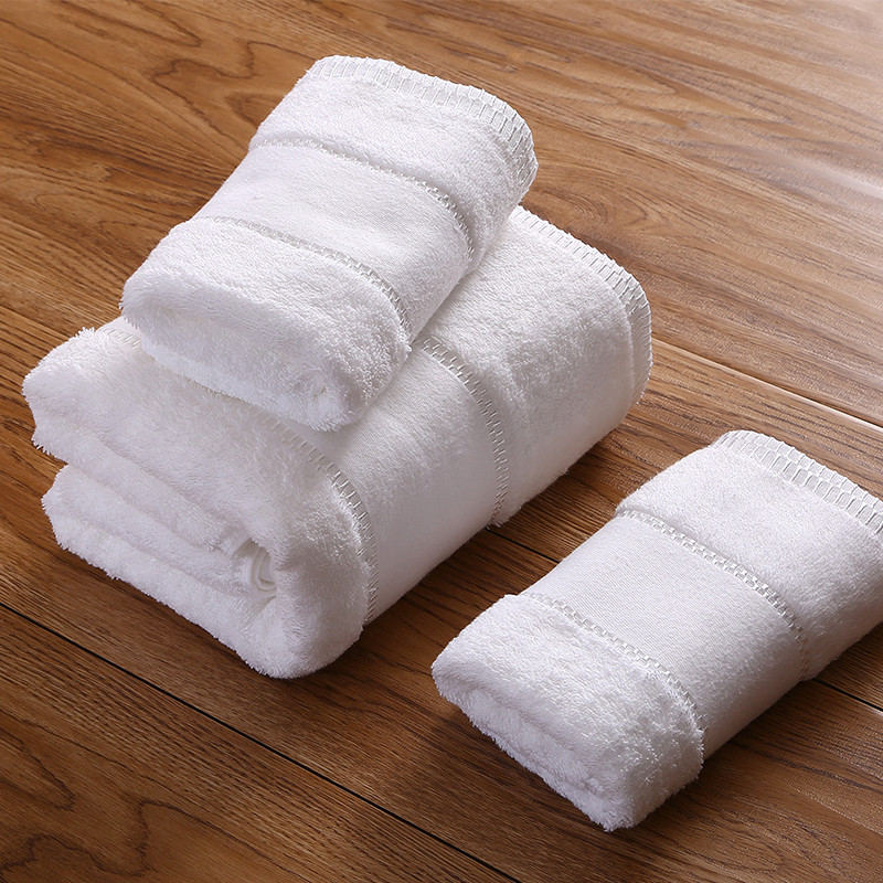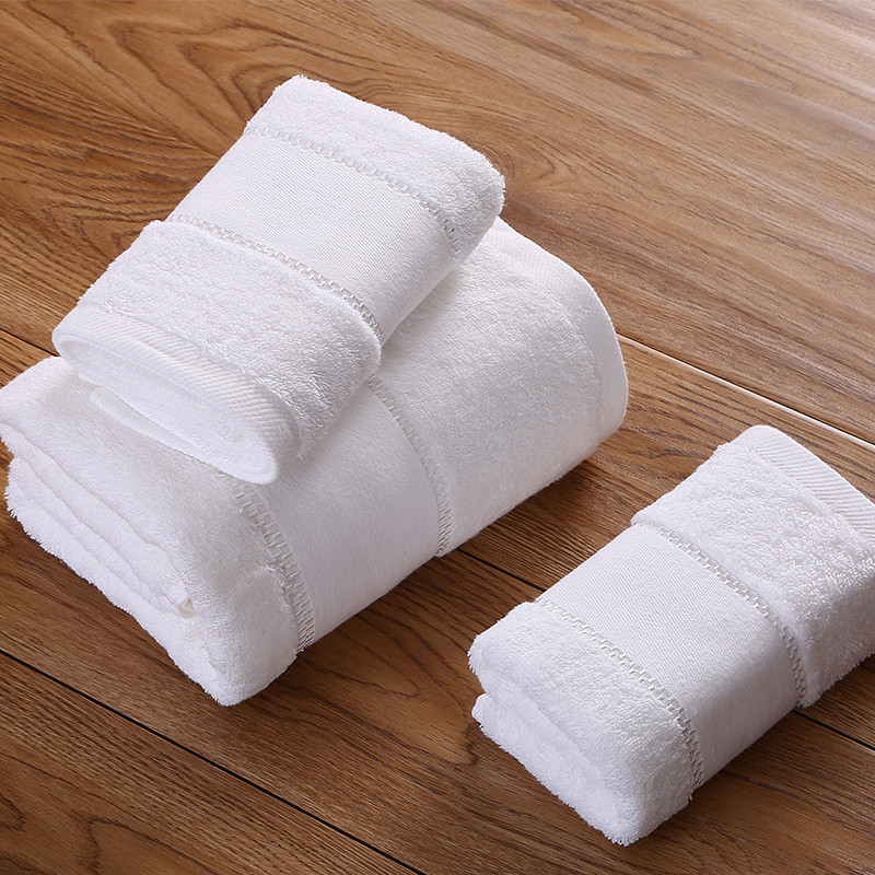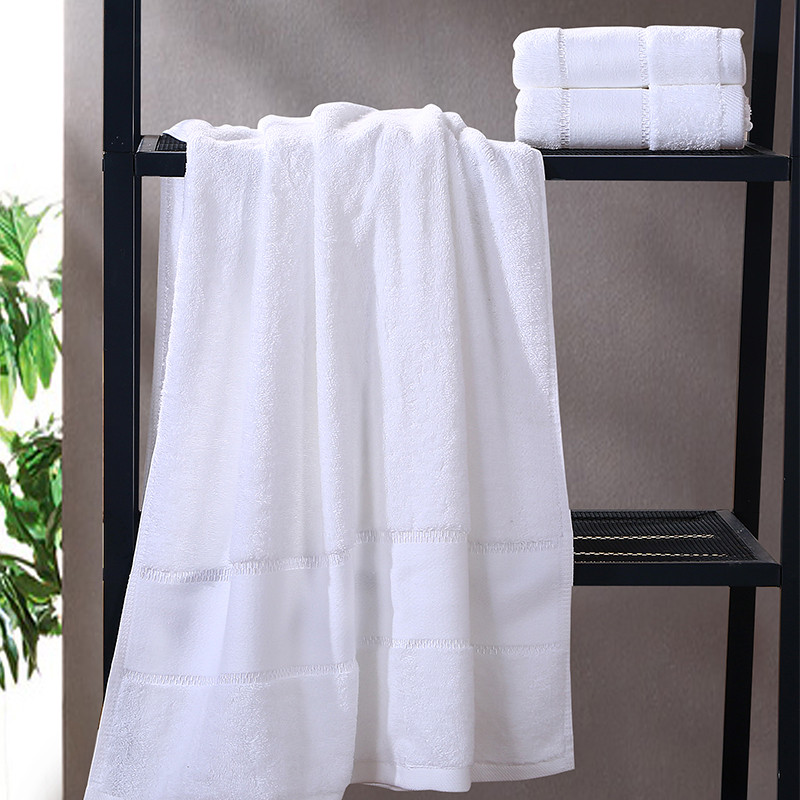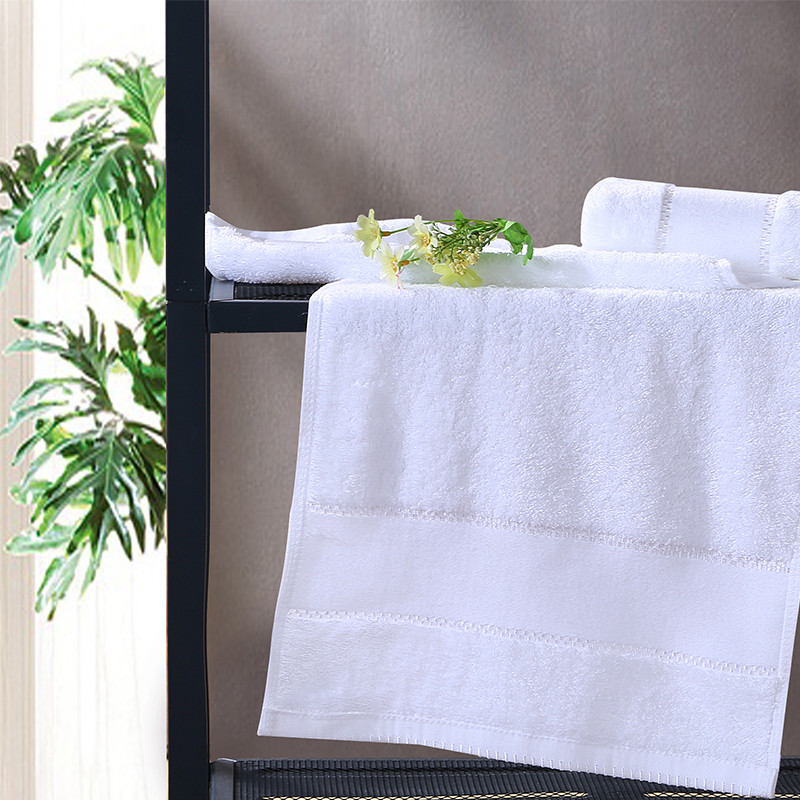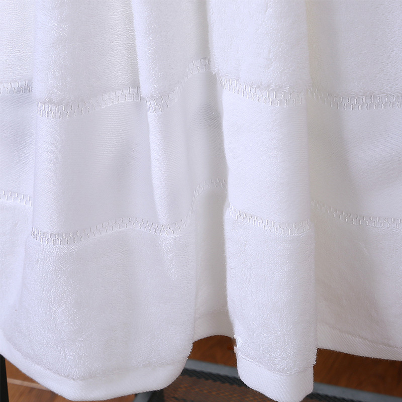 Hjem / Produkter / Hotel håndklæde / Dobby Border hvid sølv tråd håndklæde sæt